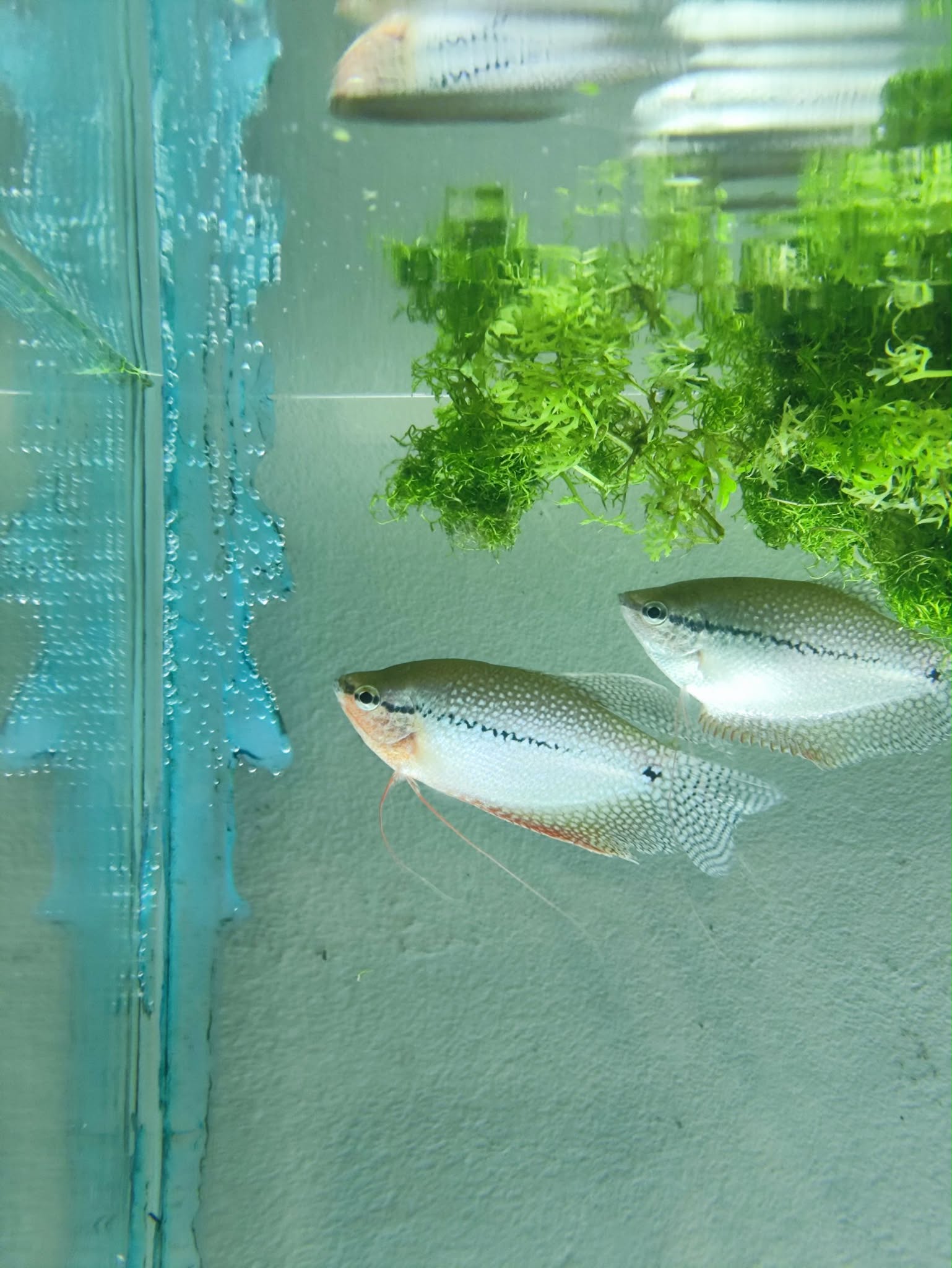 Gurami mozaikowe posiada narząd labiryntowy, dzięki czemu może oddychać powietrzem atmosferycznym – dlatego ważny jest swobodny dostęp do powierzchni wody.