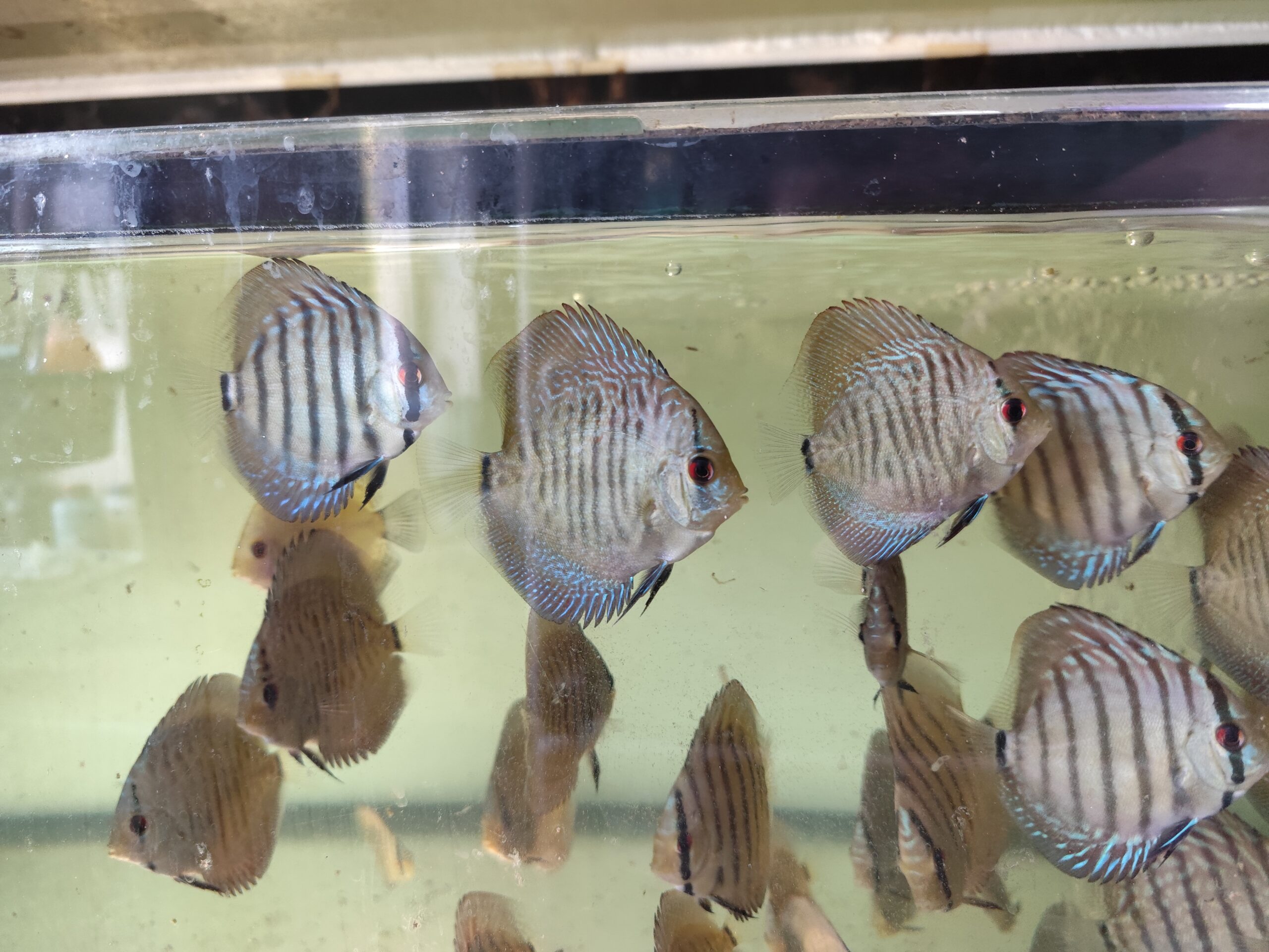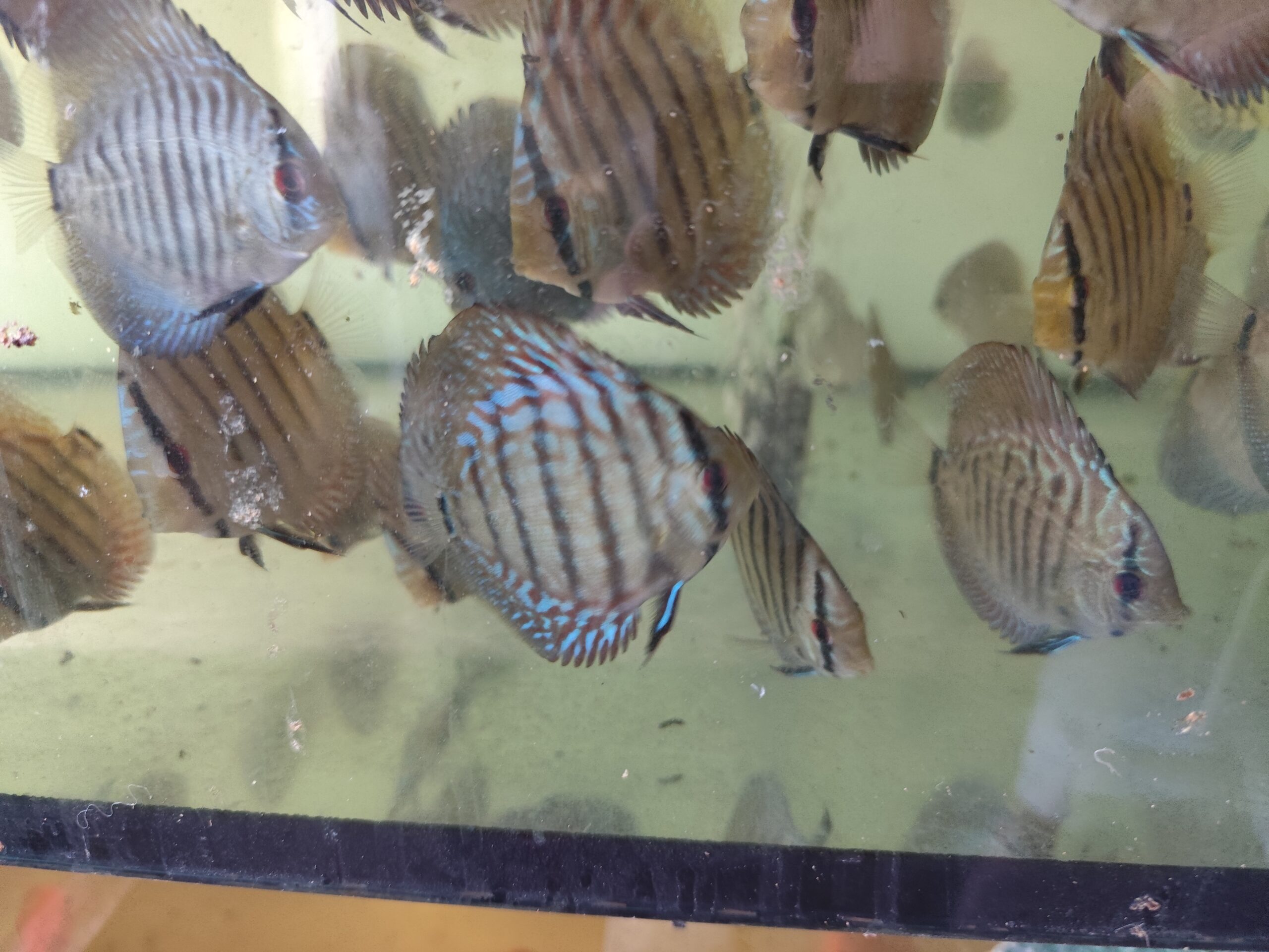 Dla odmiany Turkus Blue zaleca się zbiornik o pojemności minimum 250 litrów. Paletki są rybami stadnymi, dlatego powinny być trzymane w grupie co najmniej 10 osobników. W większym stadzie ryby czują się pewniej, są mniej płochliwe i chętniej prezentują swoje naturalne zachowania.