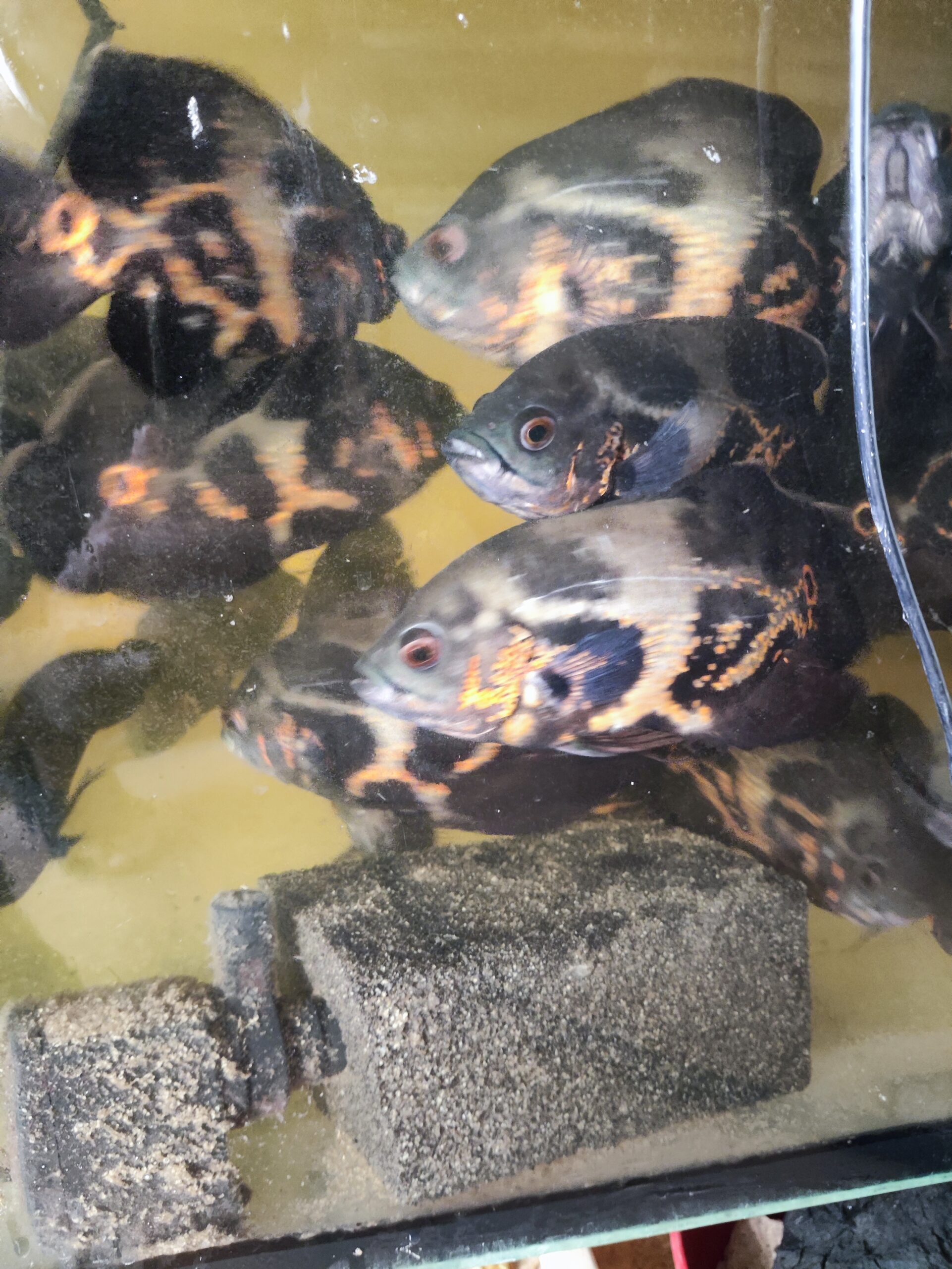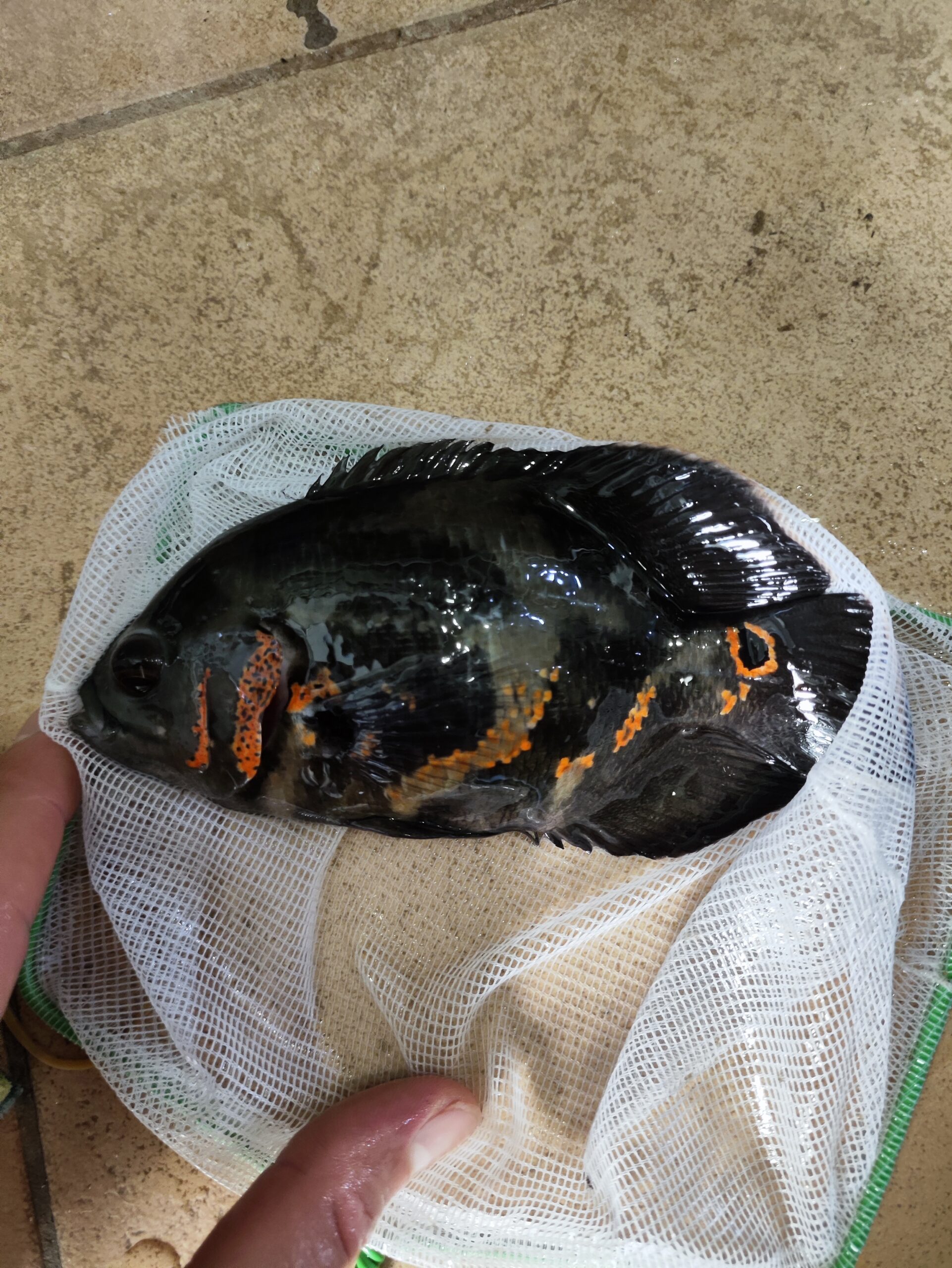 Kolejna bardzo popularna odmiana to Red Tiger Oscar, która posiada kontrastowy wzór przypominający umaszczenie tygrysa. Czerwone tło ciała ozdobione jest ciemnymi, nieregularnymi pasami lub plamami, co nadaje rybie drapieżnego i dynamicznego charakteru. To jedna z najbardziej efektownych wersji kolorystycznych pielęgnicy pawiookiej.